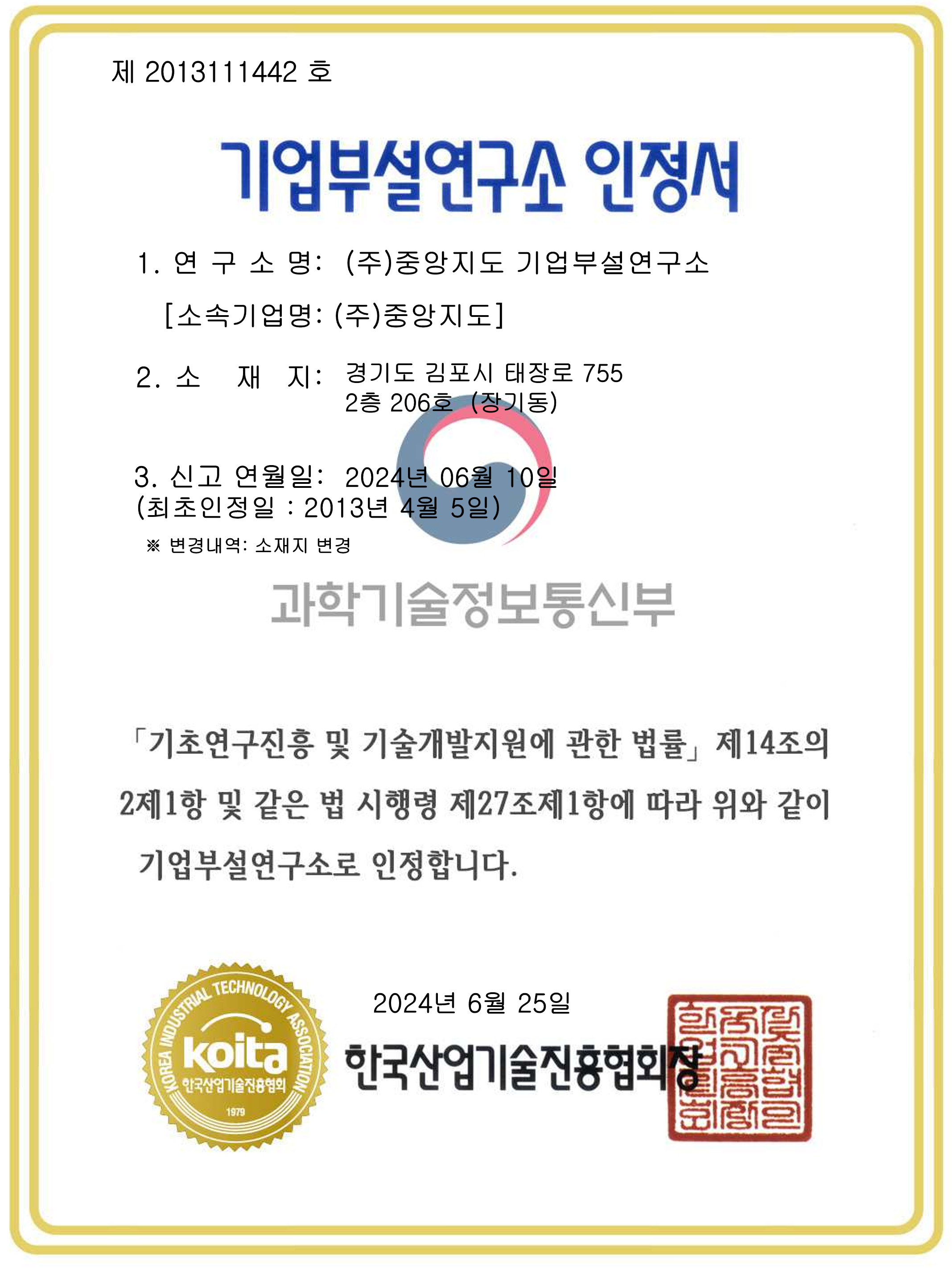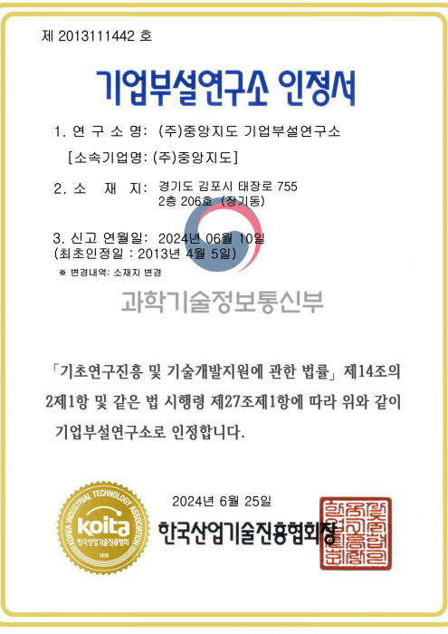 기업부설연구소 인정서
