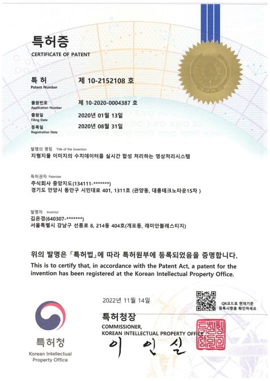 (특허증)지형지물 이미지의 수치데이터를 실시간 합성 처리하는 영상처리시스템