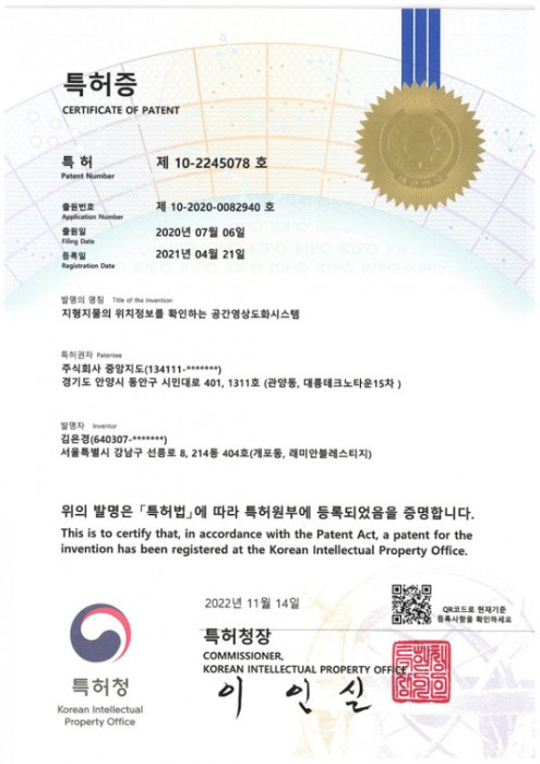 (특허증)지형지물의 위치정보를 확인하는 공간영상도화시스템