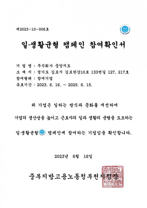 일 · 생활균형 캠페인 참여 확인서