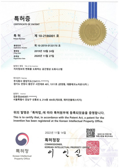 (특허증)지리정보의 변화를 도화하는 공간영상 도화시스템